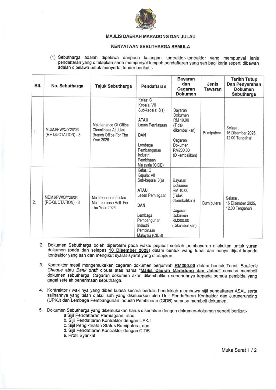 Source of News: KENYATAAN SEBUTHARGA